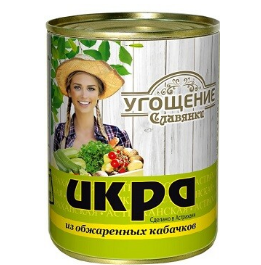 Икра из кабачков «Угощение славянки» — это готовое блюдо, которое поставляется в жестяной банке объемом 340 мл. Открыть ее просто — для этого предусмотрено кольцо, за которое нужно потянуть. Сочетание обжаренных кабачков, репчатого лука, моркови и других ингредиентов — это вкусно и полезно. Кабачковая икра — отличная закуска, ее можно намазывать на бутерброды и тосты, галеты и диетические хлебцы. Она может использоваться в качестве соуса к мясным и рыбным блюдам, а также как заправка для супов.