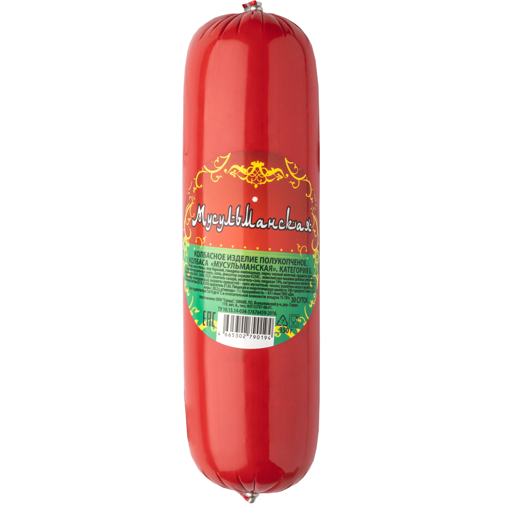 Колбаса СОВАД Мусульманская из мяса птицы с добавлением натуральных специй. Красивый колбасный срез, интересная неоднородная фактура, яркий и насыщенный вкус, повышенное содержание белка и пониженное жира сделают эту колбасу частым гостем на вашем столе. Прекрасно сочетается с овощами, подойдет для бутербродов. Хороша на обед, прекрасна с гарниром на ужин, подходит к любому событию и всегда займет достойное место на вашем столе.