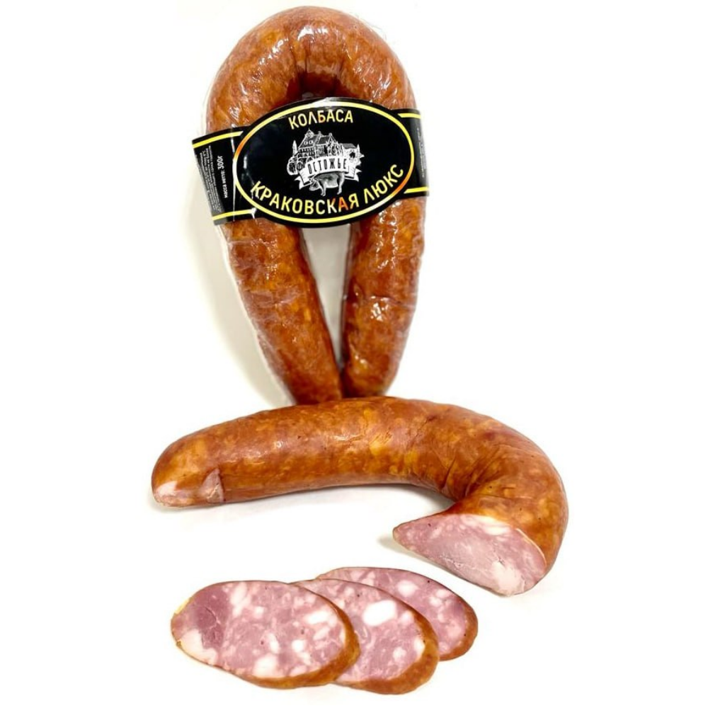 Колбаса Краковская Люкс полукопченая Остожье полукопченая 300г – отличное решение для сытного семейного завтрака или перекуса в течение дня. Идеально подходит для приготовления бутербродов, нарезок, салатов, солянки и других вкусных блюд.