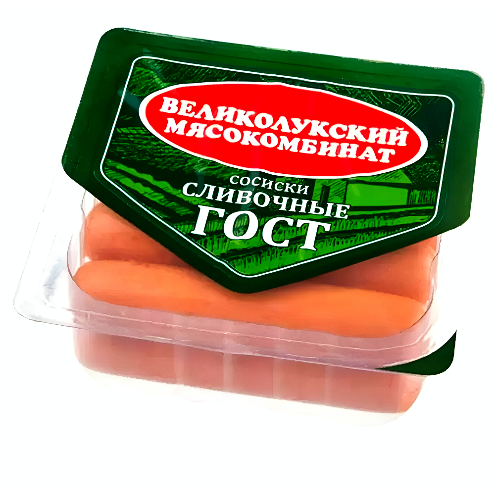Сосиски произведены по рецептуре в соответствии с ГОСТ, обладают нежной консистенцией. Удачное сочетание мясных ингредиентов и аромата настоящих сливок, придаёт им незабываемый сливочный вкус в горячем виде.