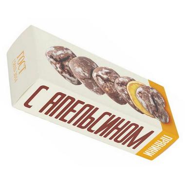 Мука пшеничная хлебопекарная, сахар, начинка Апельсин (сахар, апельсин, пюре яблока, загуститель пектины, регулятор кислотности лимонная кислота, ароматизатор), патока, масло подсолнечное рафинированное дезодорированное, вода питьевая, мука ржаная хлебопекарная обдирная, цукаты апельсиновые, шоколад горький (какао-тертое, сахар, какао масло, эмульгатор (лецитин соевый), ароматизатор), какао тёртое, какао порошок натуральный, молоко сухое цельное, разрыхлитель - гидрокарбонат аммония, консервант сорбат калия.