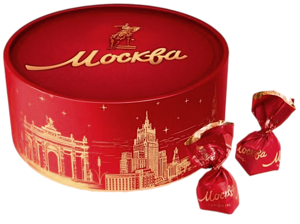 Конфеты «Москва» – воздушное суфле с ядрышком из мягкой карамели, покрытое молочным шоколадом с декоративными узорами красных полос. Любимая горожанами вареная сгущенка в сочетании с нежным сливочным вкусом суфле и тающим молочным шоколадом, напоминающим детство.