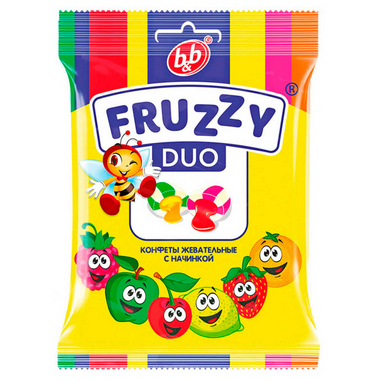 Жевательные конфеты "Fruzzy Duo" с жидкой начинкой – это ассорти сочных фруктовых вкусов. Заряд яркого и летнего настроения в каждой конфете!