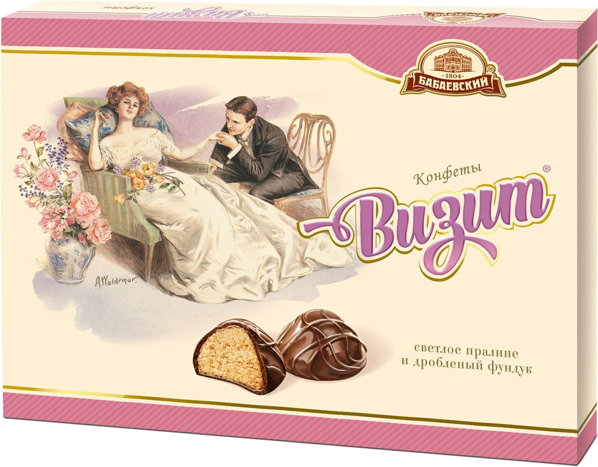Набор конфет Визит от концерна Бабаевский. Светлое пралине с дробленым лесным орехом, покрытое шелковой шоколадной глазурью.