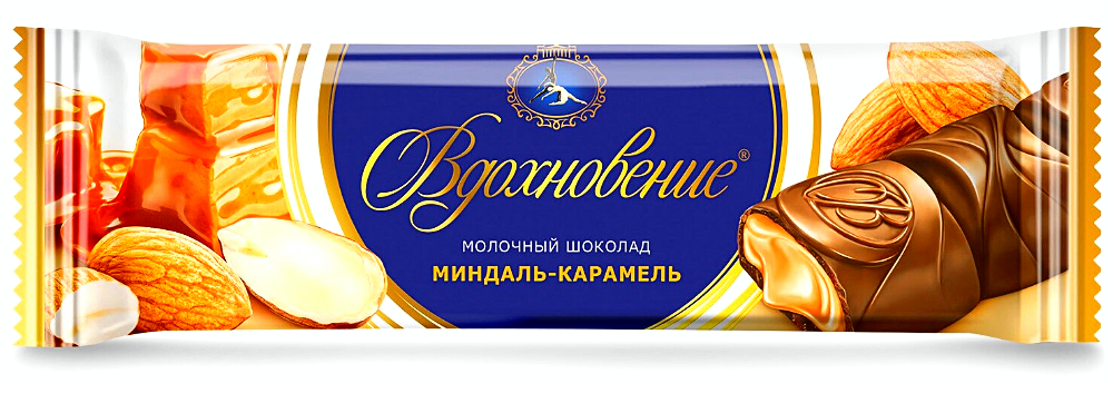 Вкуснейший шоколадый батончик с тающей кремовой начинкой с тертым миндалем и кусочками карамели.