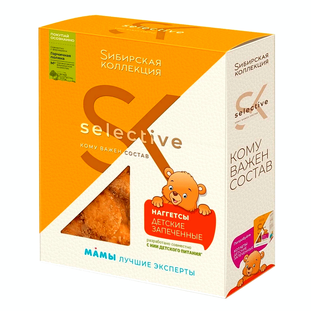 Наггетсы детские запеченные – это 100% натуральный готовый продукт. В приготовлении использовано натуральное куриное мясо, которое поступает напрямую с органических ферм. Selective – для тех, кому важен состав!