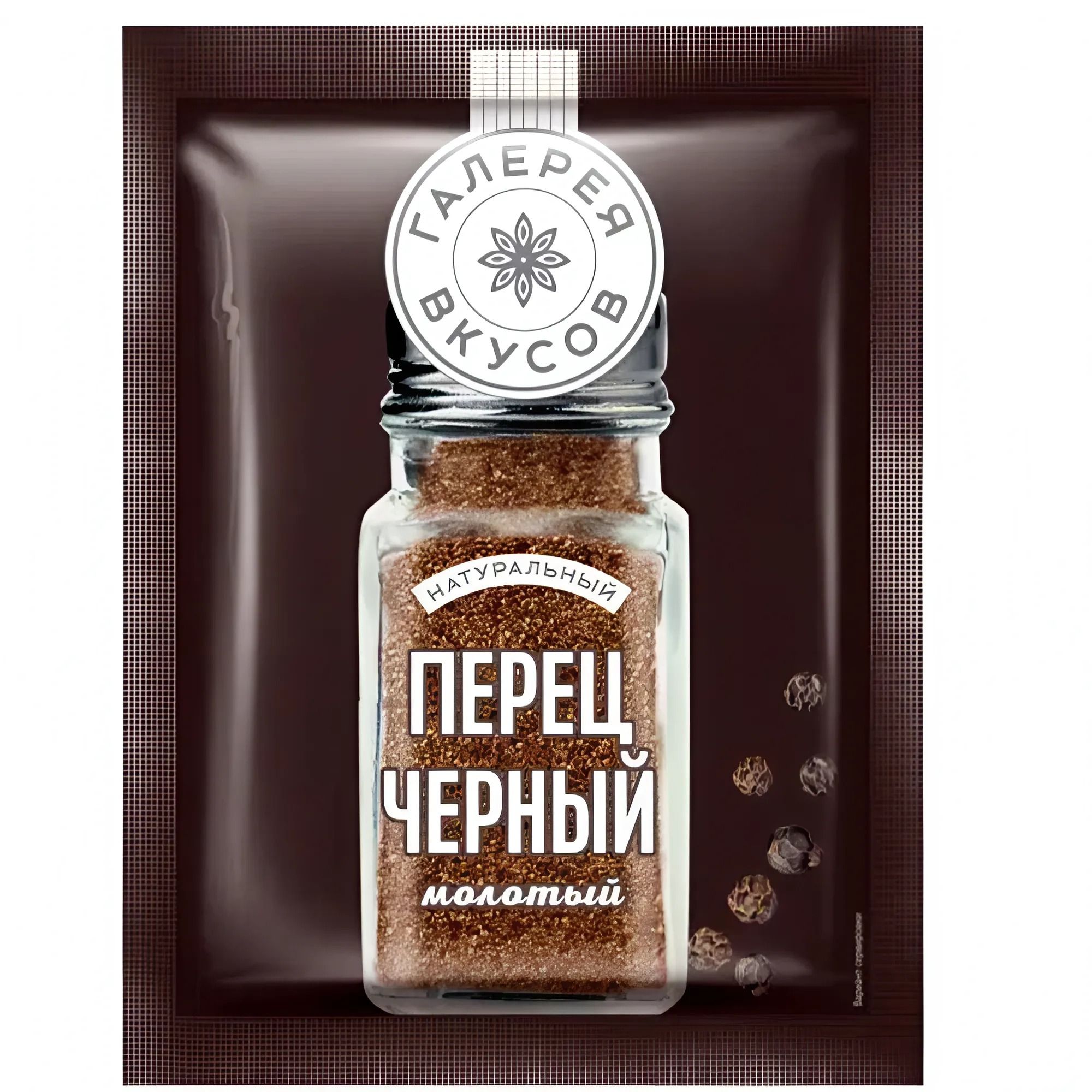 Чёрный молотый перец "Галерея вкусов" – это 100% натуральная специя с насыщенным ароматом и умеренной остротой. Идеально подходит для мяса, супов, салатов и других блюд, придавая им пикантность и глубину вкуса.