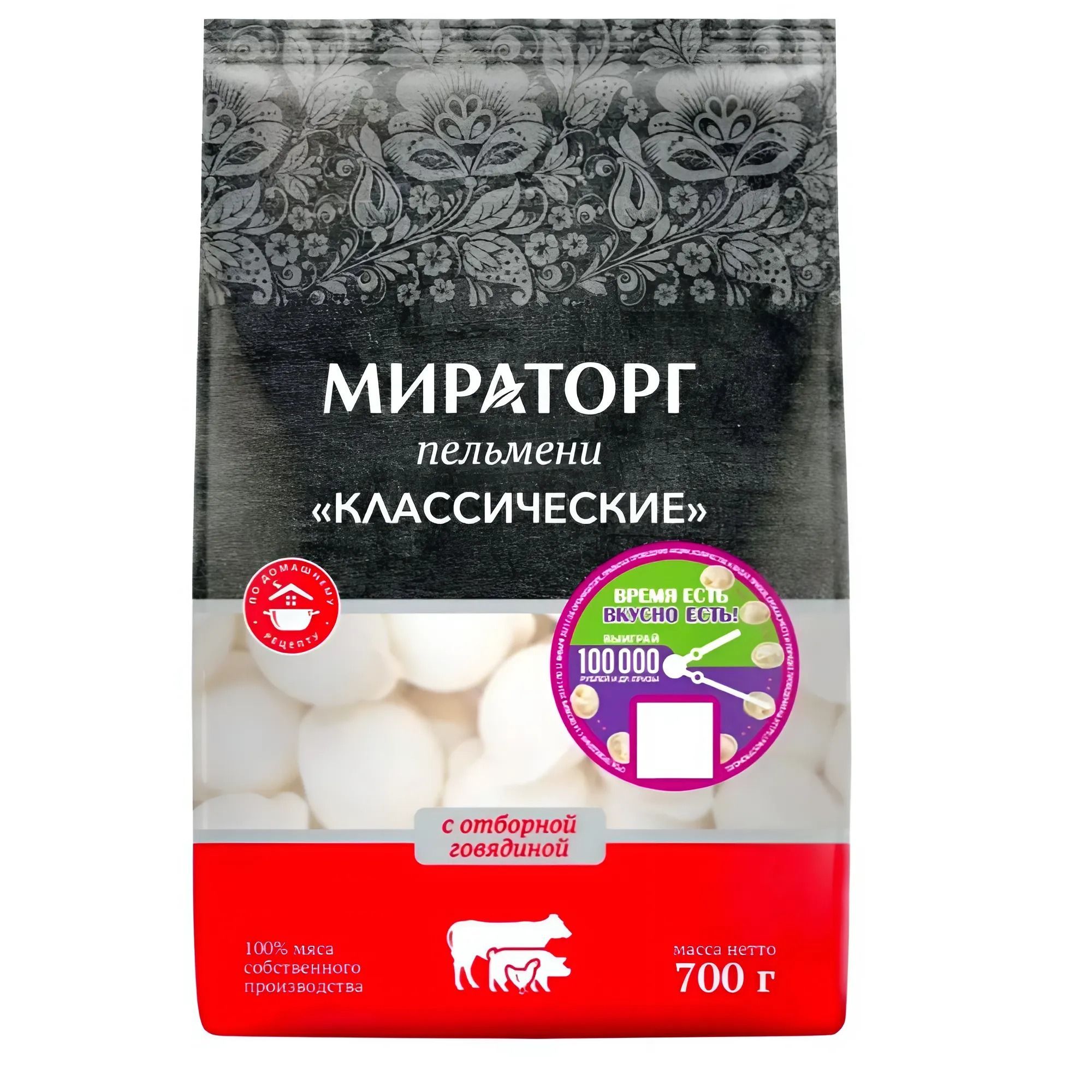 Пельмени «Классические» от «Мираторг» – то, что нужно для ароматного и сытного домашнего обеда или ужина. Внутри тонкого теста много сочной начинки из отборной свинины, говядины и цыпленка-бройлера с собственных ферм, а также душистые специи.